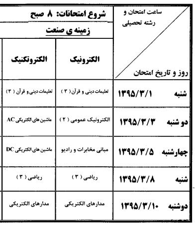 برنامه امتحانات نهایی خرداد ماه سال تحصیلی 95-94